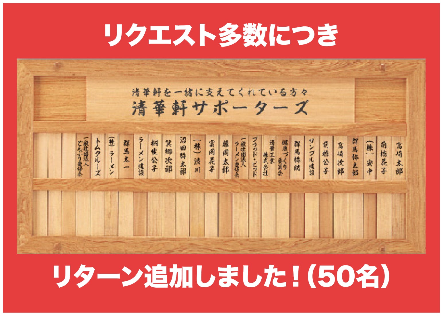 先日お知らせした”応援木札”のリターンを追加しました。たくさんのリクエストを有り難うございました!