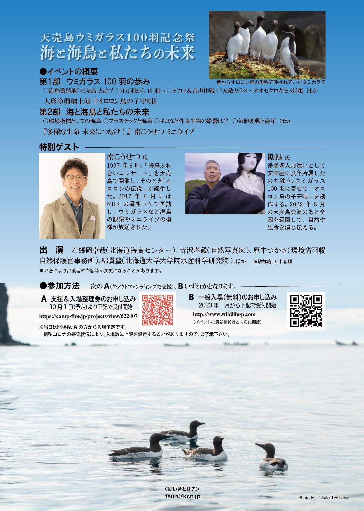 名 称 天売島ウミガラス100羽記念祭 海と海鳥と私たちの未来