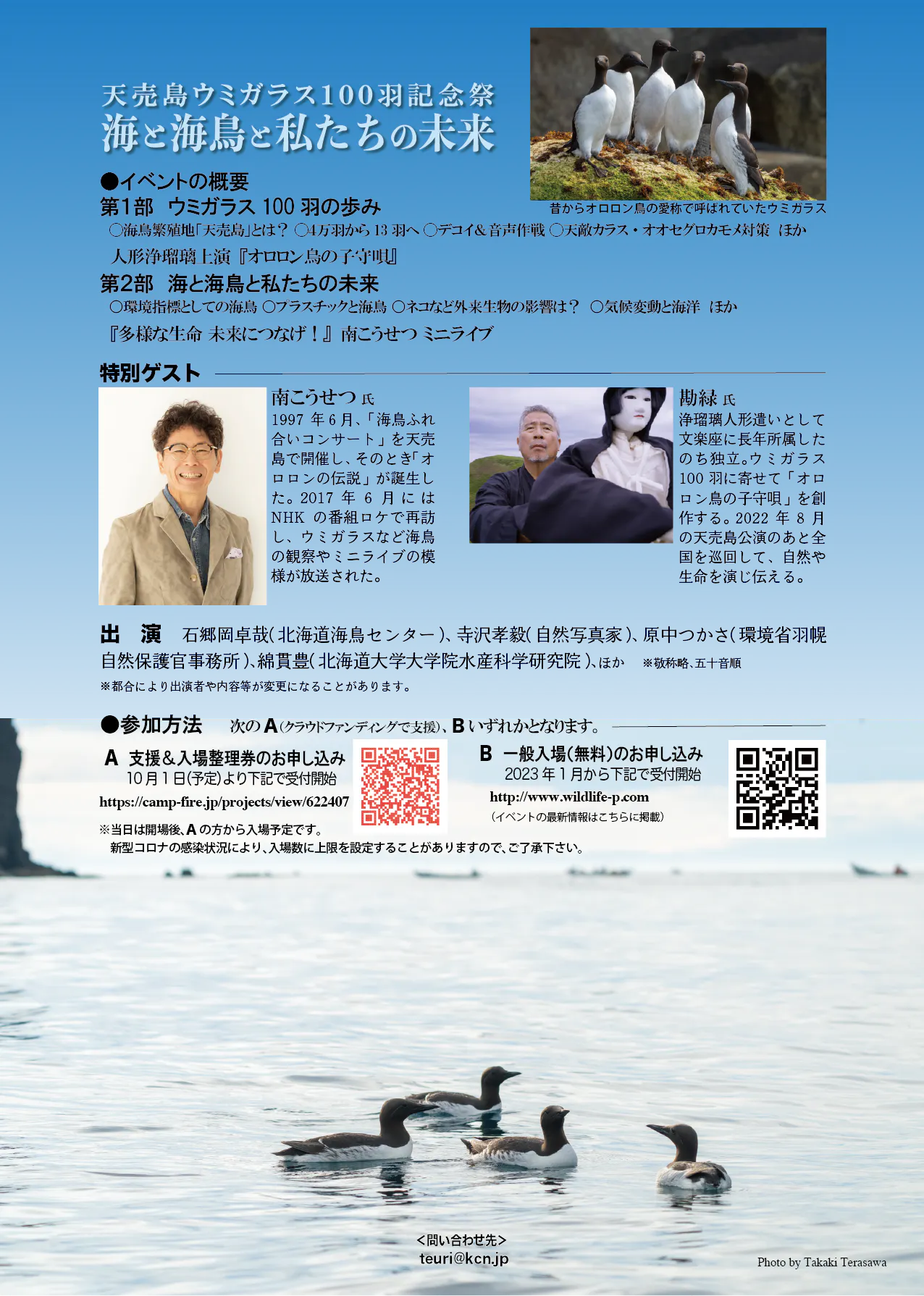 このイベントを通して、私たちの40年近いウミガラスをめぐる活動に触れていただいて、自然を守る難しさや地球の素晴らしさを思っていただければ幸いです。また、同じ志をもって活動する方々に、エールとなって届けば嬉しいです。それが人を含む地球の生命の多様性を守ることにつながることを願います。