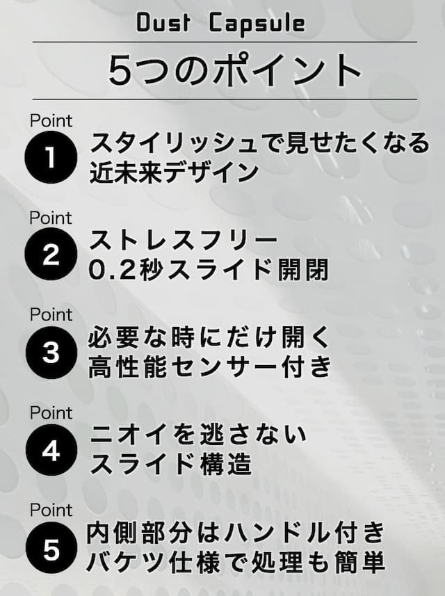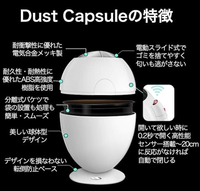今回取り扱わせていただくスマートゴミ箱『Dust Capsule』は見た目はもちろん機能面の優れた新世代のゴミ箱です!