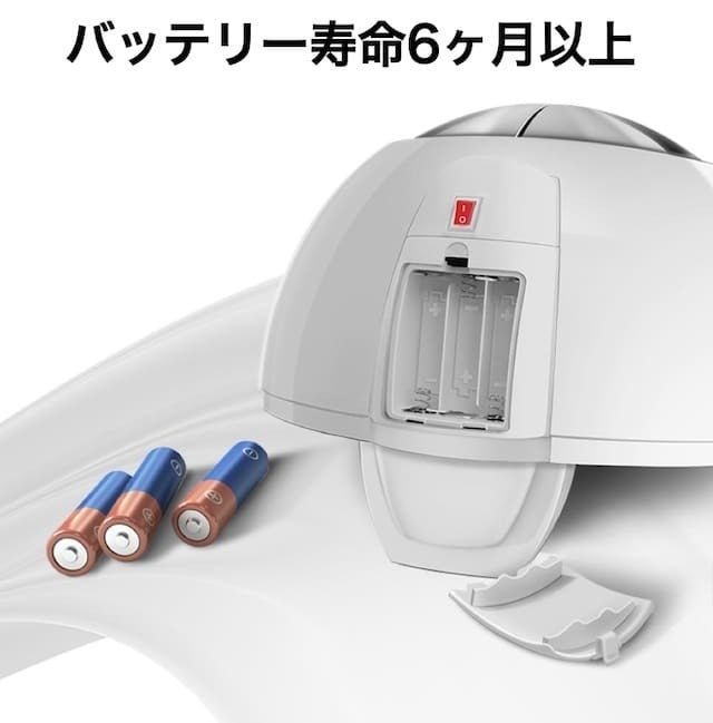 単三電池3本で約6ヶ月間の長寿命なので交換の手間も省けます。
