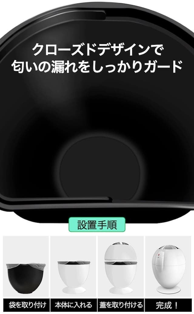 本体と内側バケツの隙間も少ないクローズドデザインで匂いの漏れもしっかりガード!