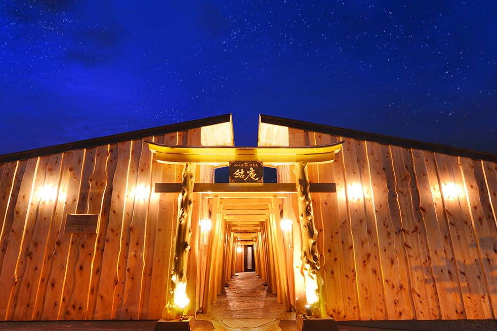 別府の名山、鶴見岳が生み出した蒸発性と蓄熱性に優れる「別府石」のサウナストーンから立ち込める柔らかい蒸気のヴエールが極上のリラックスへと誘います。