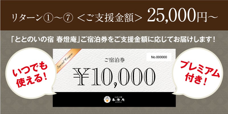 いつでも使える「ととのいの宿 春燈庵」ご宿泊券をご支援金額に応じてお届けします!