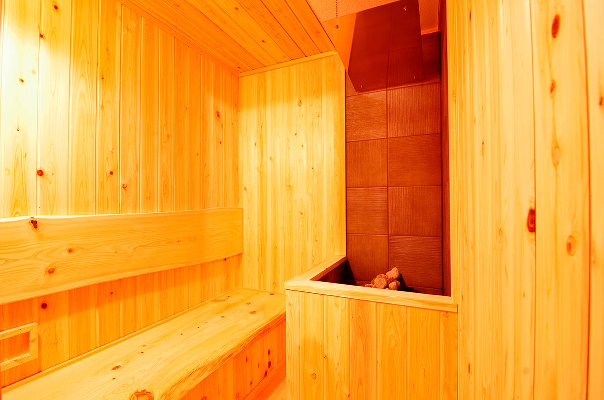 檜の香に包まれる対流式のプライベートサウナでは、セルフロウリュウもお楽しみいただけます。