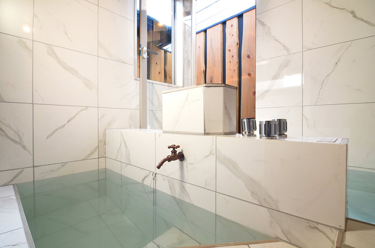 全てのお部屋に、地下深くより汲み上げた16.5℃の天然水掛け流しの水風呂をご用意いたしております。