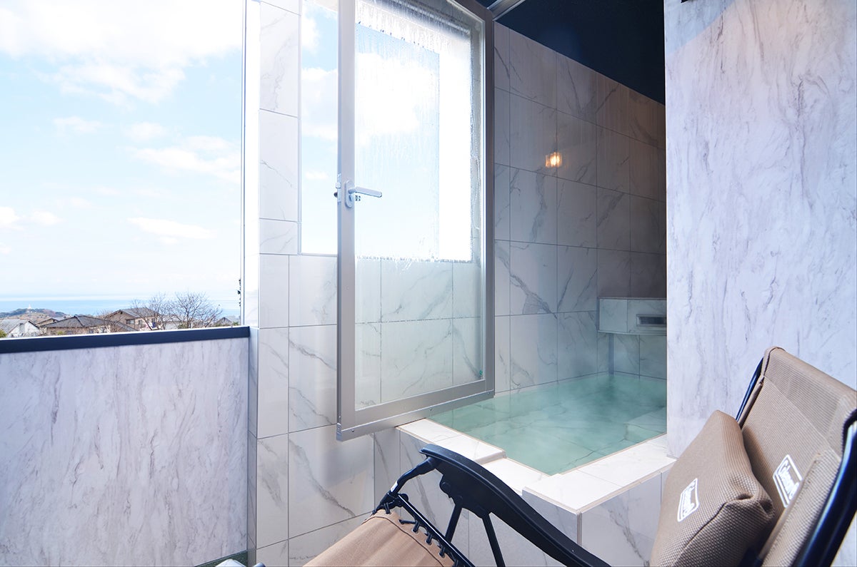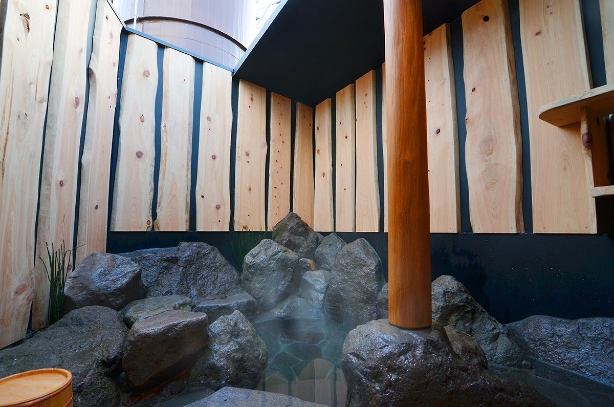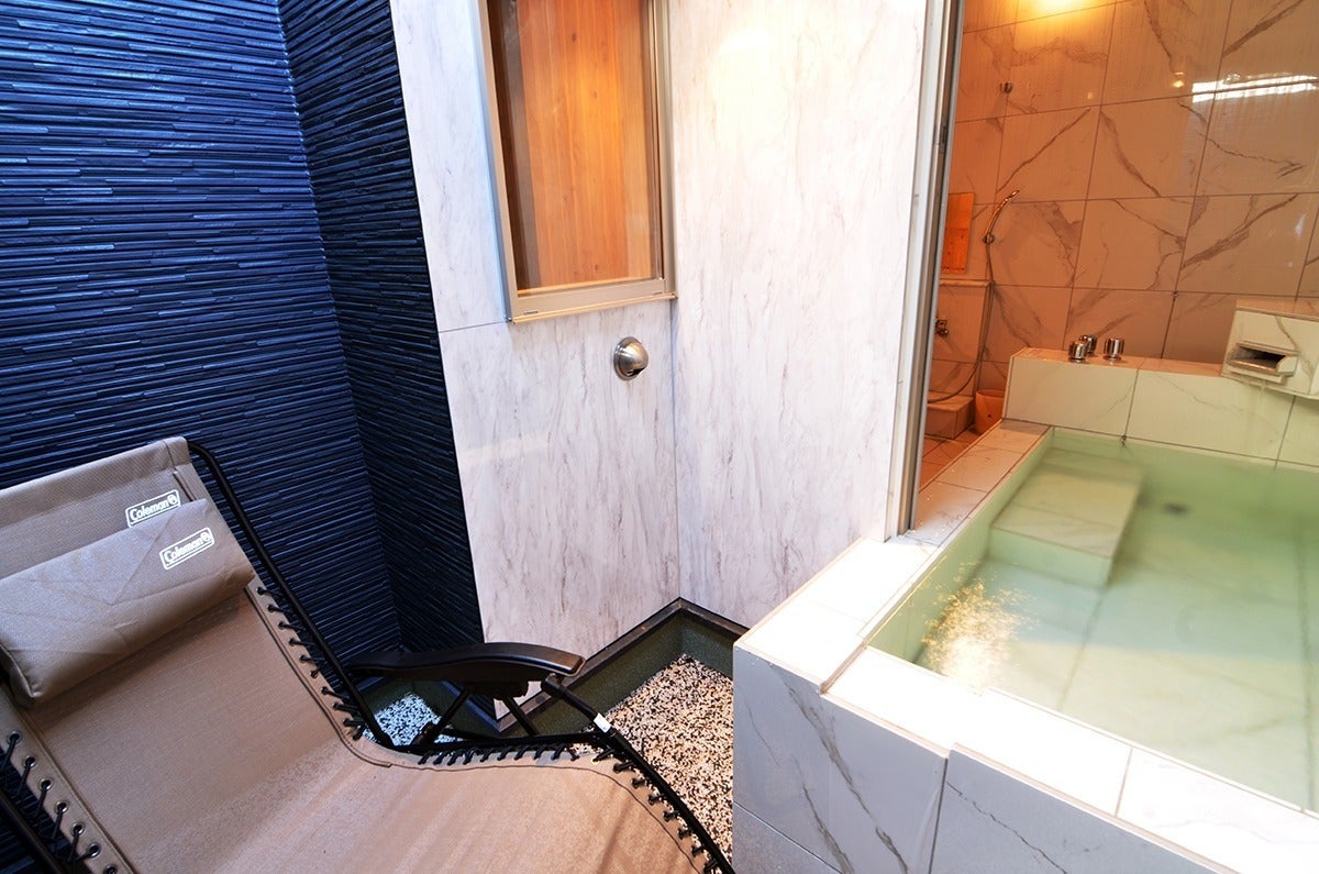 全てのお部屋に、地下深くより汲み上げた16.5℃の天然水掛け流しの水風呂をご用意いたしております。