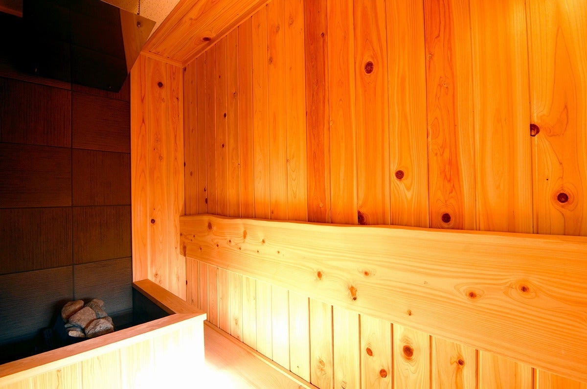 檜の香に包まれる対流式のプライベートサウナでは、セルフロウリュウもお楽しみいただけます。