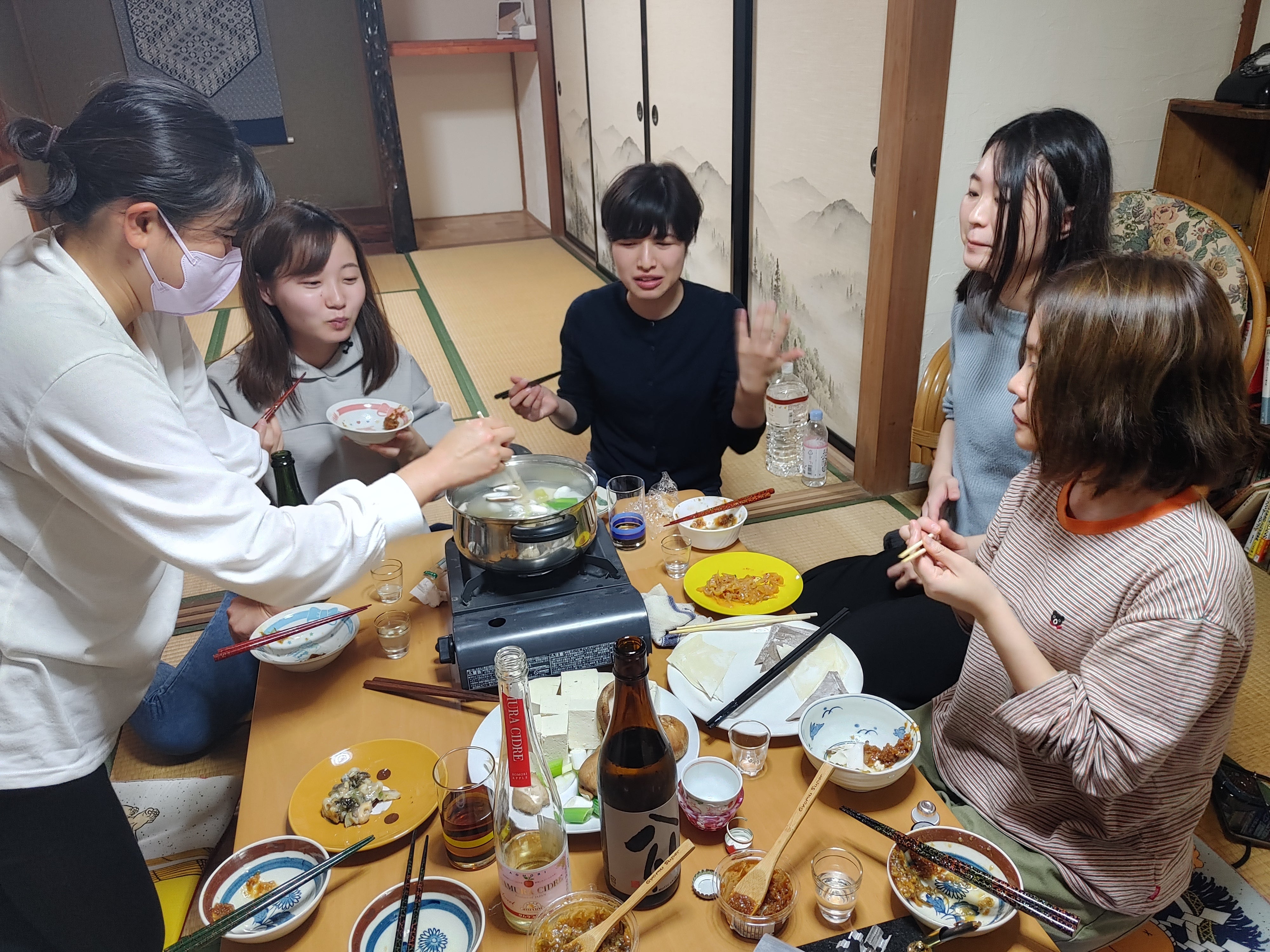 ゲストハウスにて、八戸の郷土料理「かっけ」と「せんべい汁」をみんなで作りました。ゲストさん同士も交流を楽しみました!