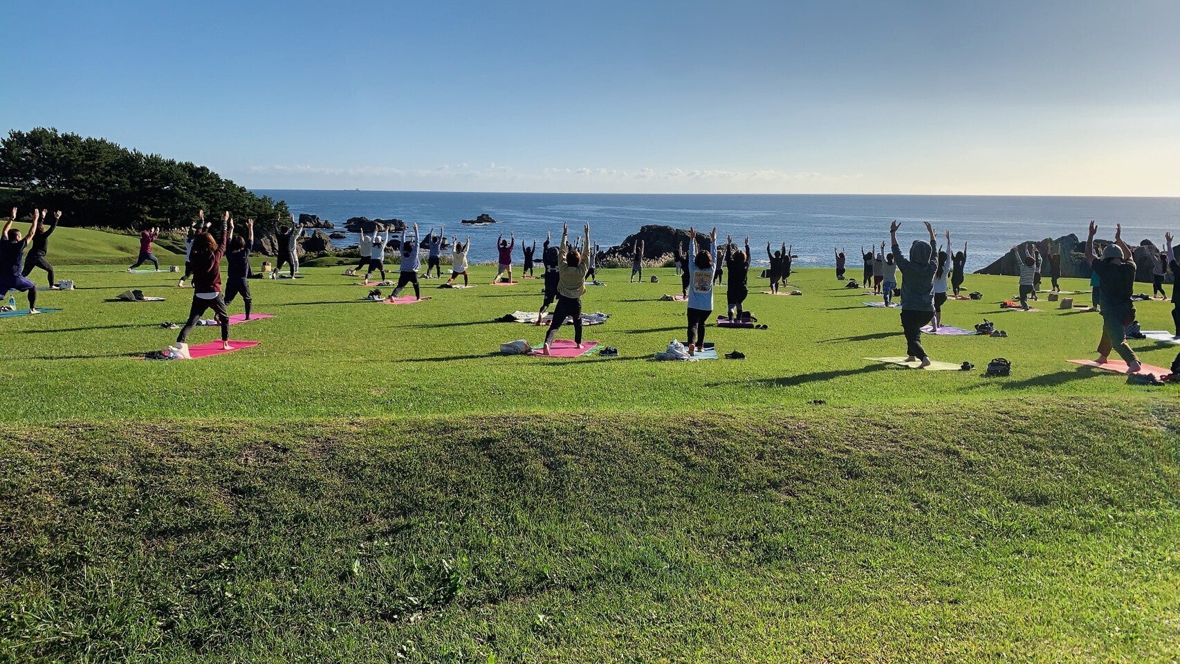 朝5時に起き、館鼻岸壁朝市と種差朝ヨガをはしごしました。こんな絶景の中でのヨガ体験は初めて!との声が多数。