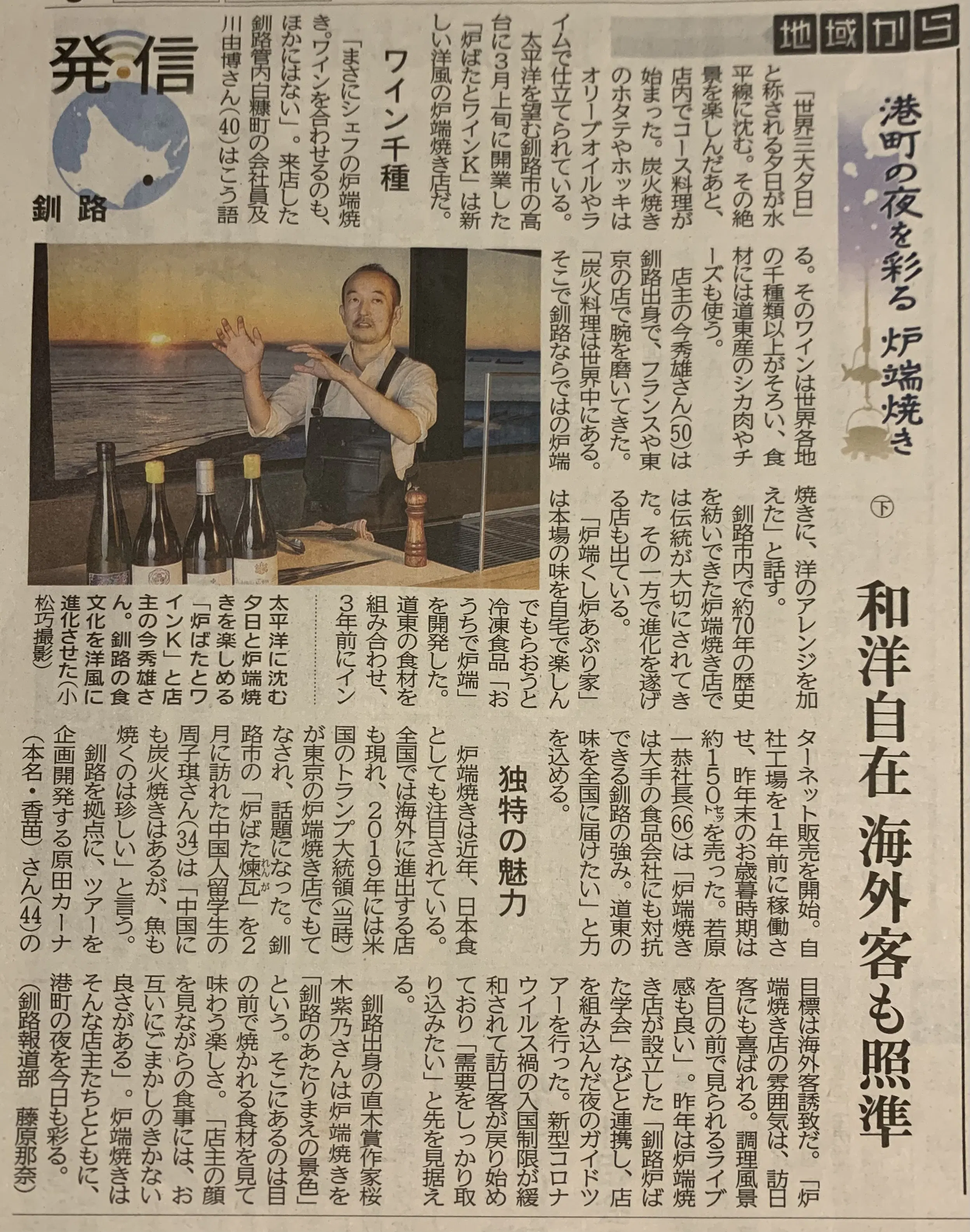 本日も北海道新聞にて『釧路の炉端焼き文化』が掲載されております!