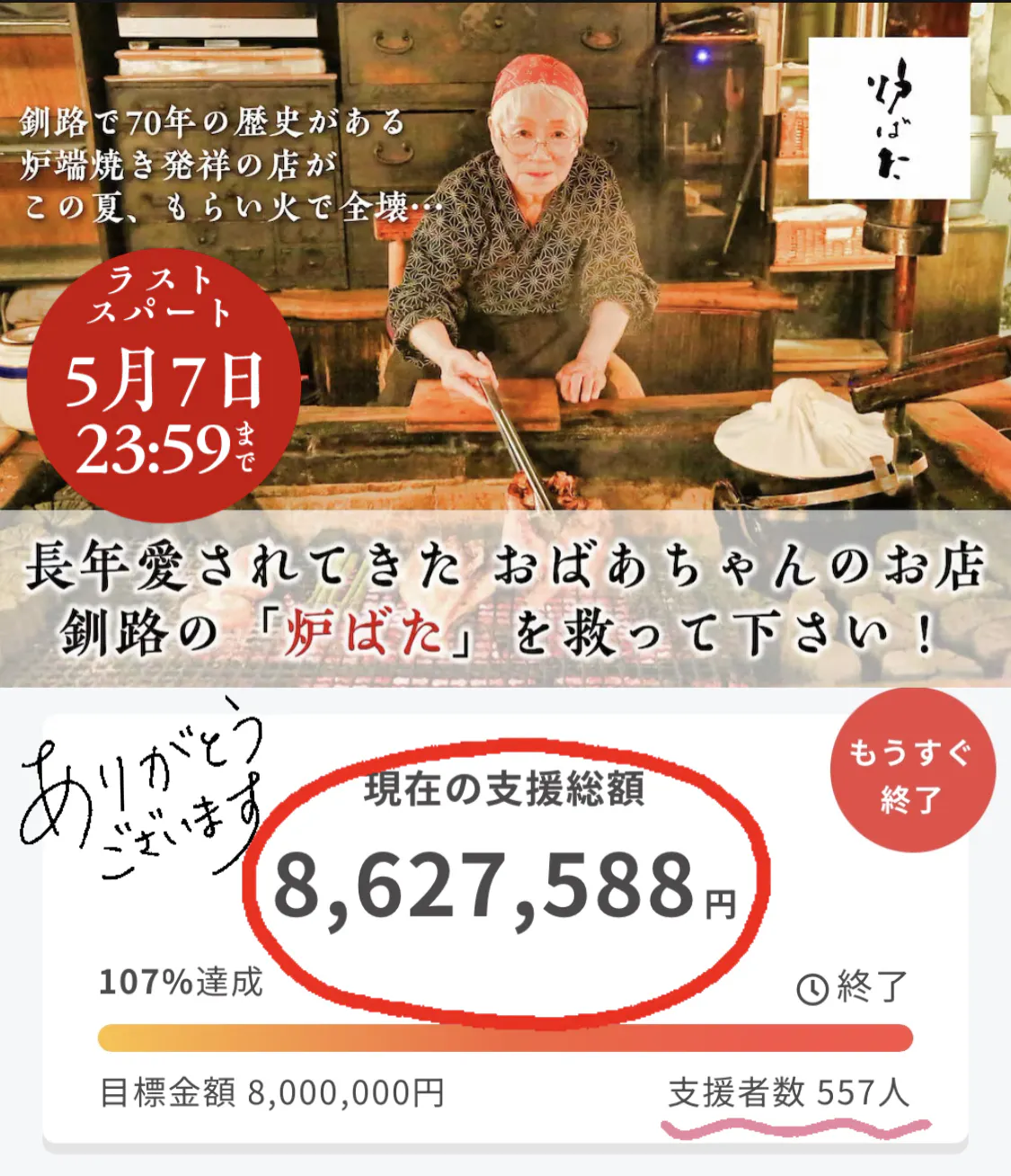 皆様のおかげで目標金額の800万も達成し、目標金額以上のご支援もいただけて、言葉に表せないほど感謝の気持ちでいっぱいです。