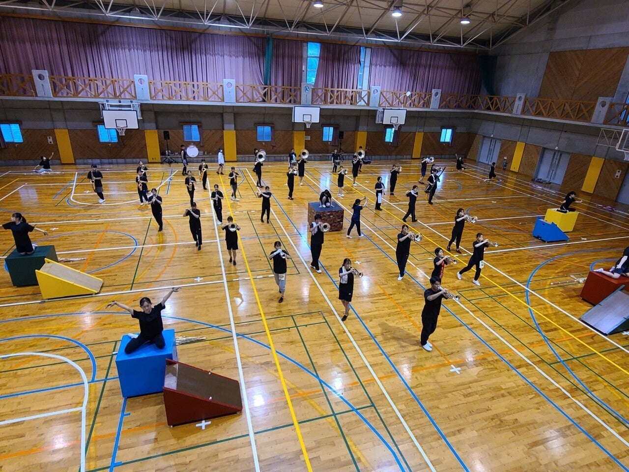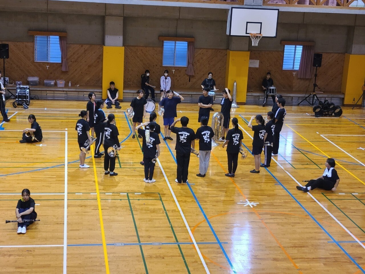 来月行われるマーチング全国大会九州予選の練習を現在体育館で練習をおこなっています。