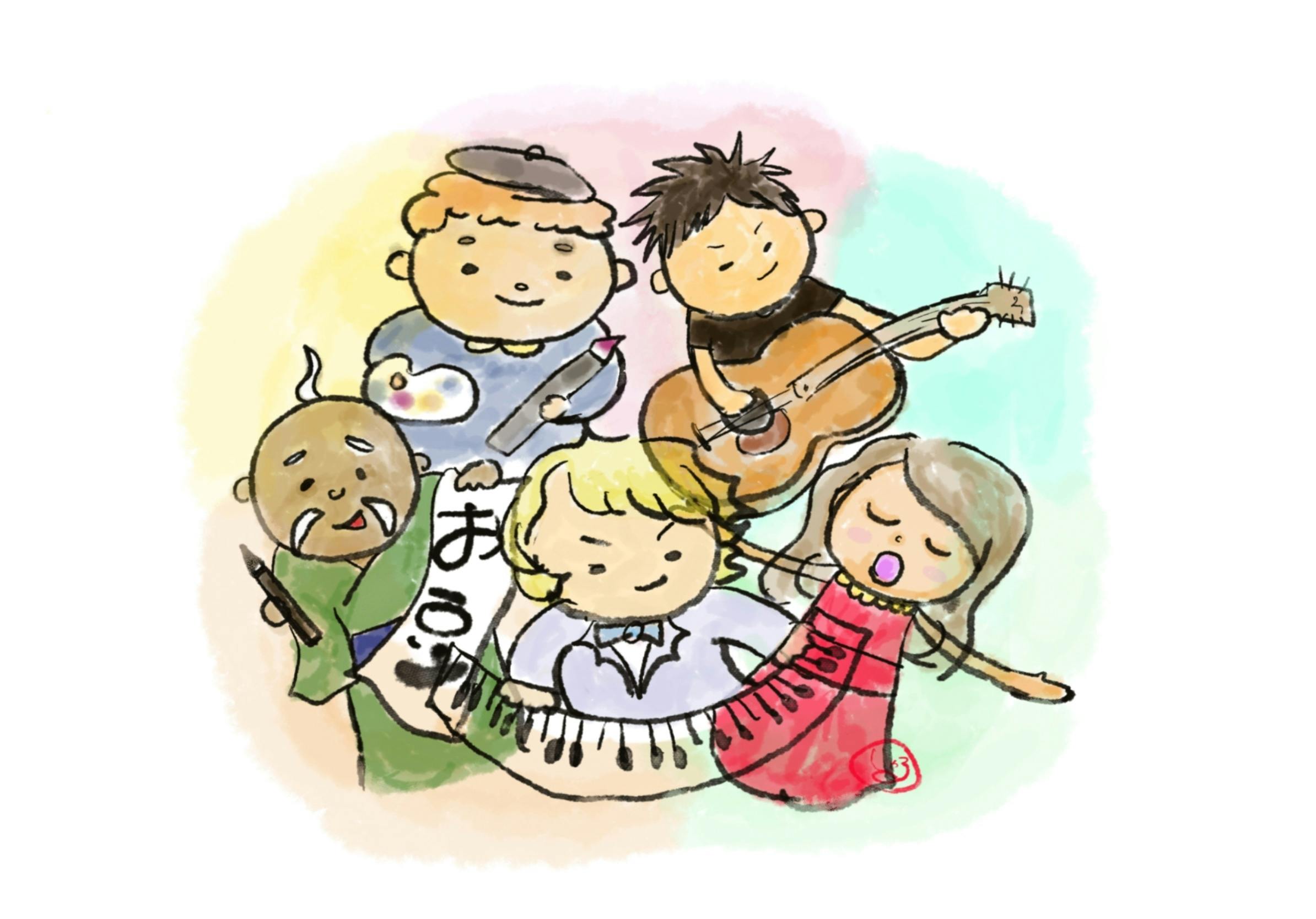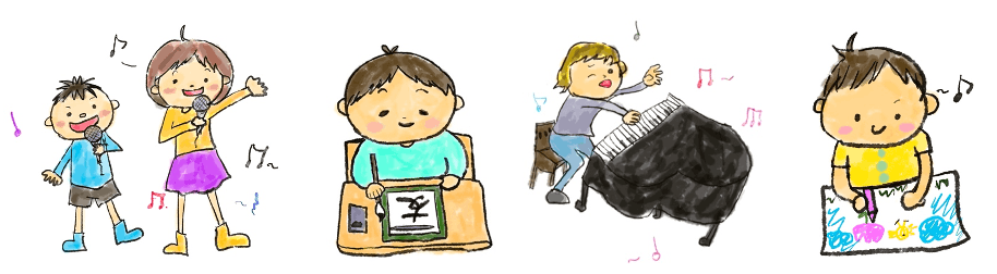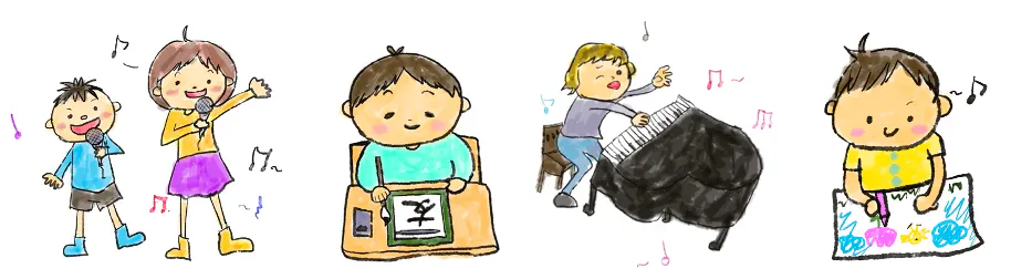 誰もが最高に楽しい笑顔で音楽を奏で、キラキラした瞳で絵を描き、黙々と文字を