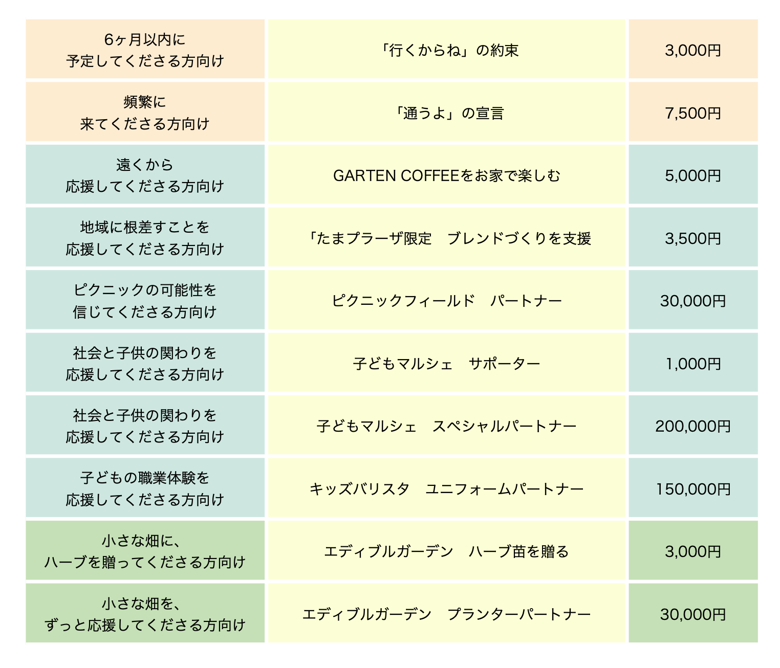 ・GARTEN COFFEE主催のイベント開催費用の補填