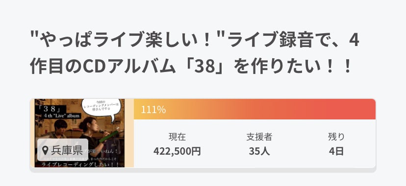 ここまで、目標金額の111%のご支援をいただいています。