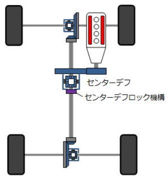 ※4WD車の3つのデフの例(センターデフロックはLSDの一つの考え方)