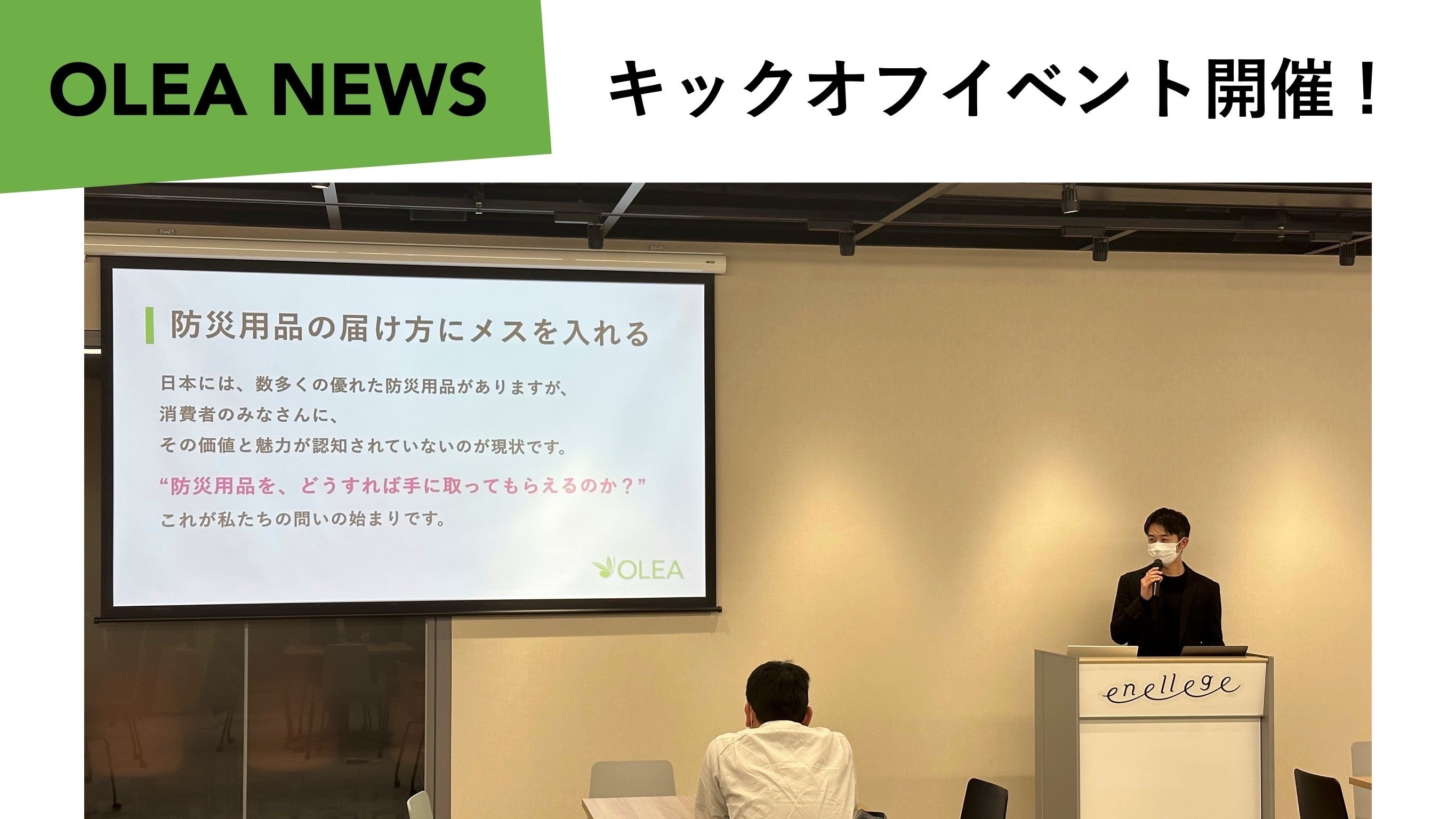 皆様こんにちは、OLEAの高橋です。今回は、昨日行ったイベントの様子をお伝えしたいと思います!1月17日は、阪神淡路大震災が発生した日です。私たちOLEAは、日本中の皆さまが防災について考えるこの日に、新しい防災文化の創造を宣言します。まずは先駆けとして、グランフロント大阪北館ナレッジキャピタルのエナレッジにて、これまでの活動報告とクラウドファンディング開始イベントを行いました。参加者の皆様にこれまでとこれからのOLEAをお見せし、日ごろの感謝をお伝えできる場となりました!ご参加いただいた方々、本当にありがとうございました!高橋ご支援はこちらから↓https://camp-fire.jp/projects/view/622758?list=projects_fresh