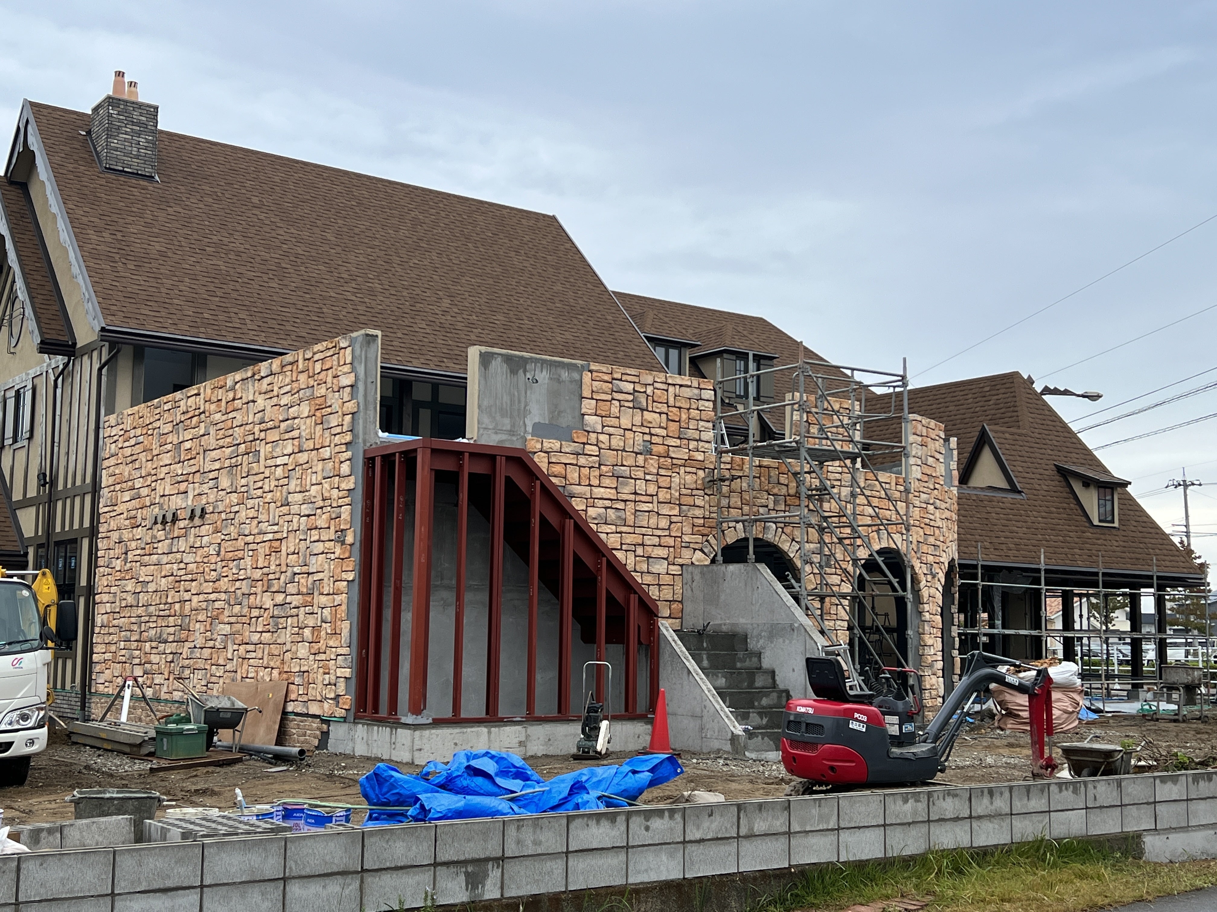 いよいよ新店舗のテラス席に向かう階段の基盤が2ヶ所設置されました。