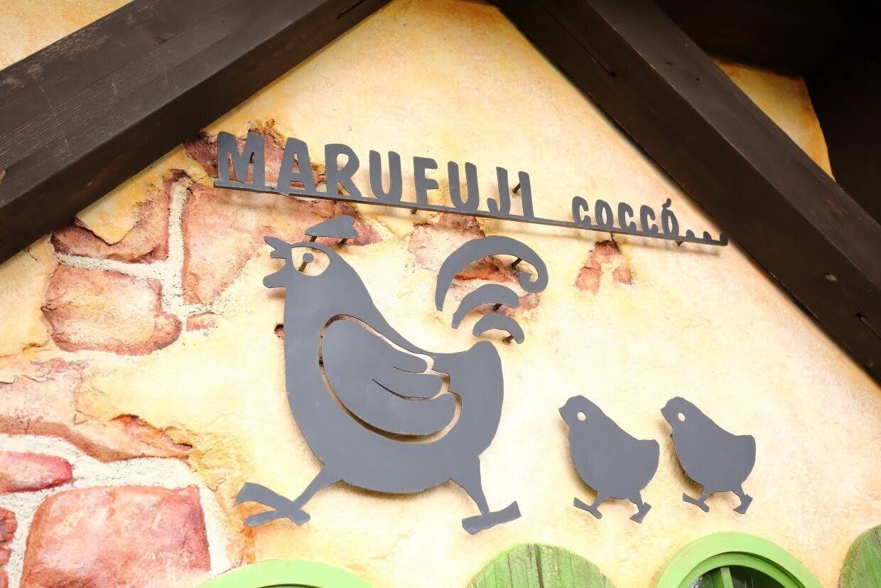 マルフジのロゴ。にわとりとひよこです