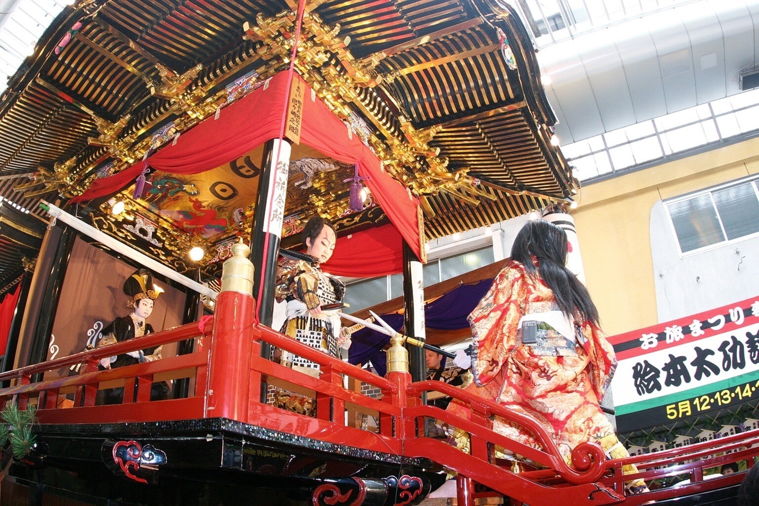 小松のお旅まつりで演じられる曳山子供歌舞伎は、近江長浜、武蔵秩父とともに全国でも有数の子供歌舞伎として知られています。写真提供:こまつ観光物産ネットワーク