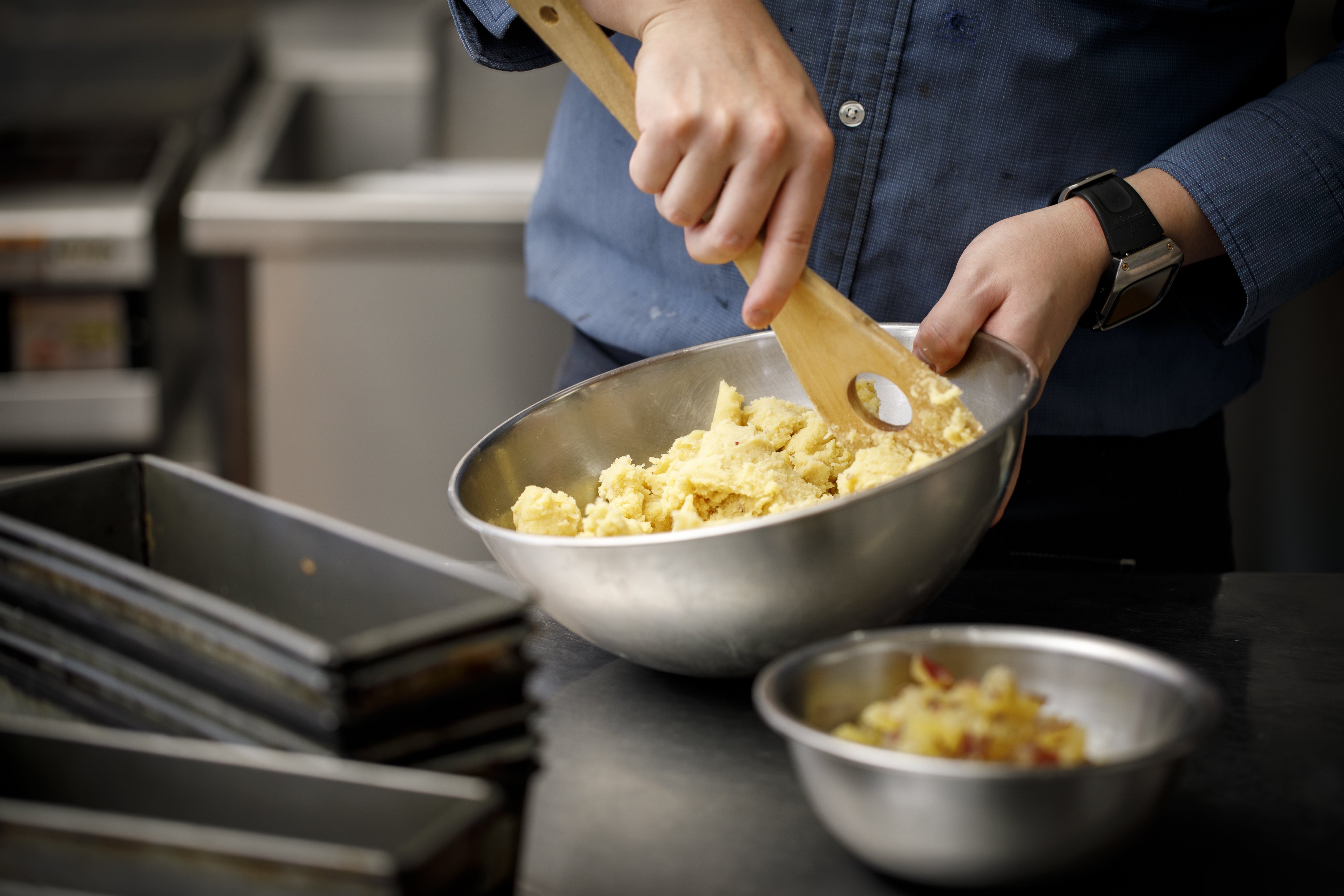 裏ごしした五郎島金時にバター、卵黄、たっぷりの生乳を加えてじっくりと練って炊き上げます