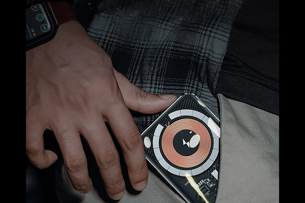 製品の両面は強化ガラスを使用し、本体の強度を維持ながら、透明なデザインで内部の基板、電子部品、ワイヤレスチャージコイル、バッテリーなどを見えるし、おしゃれな雰囲気を演出しております。