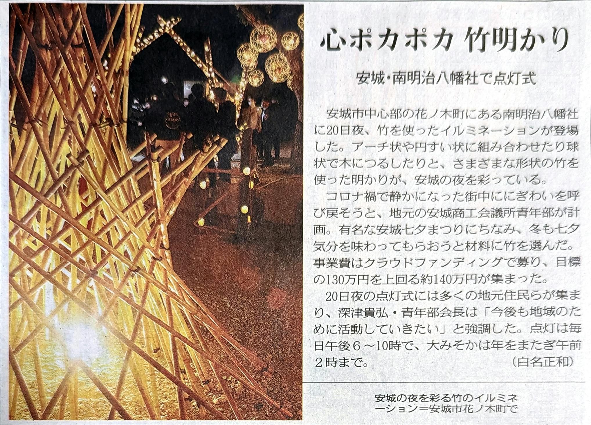 毎日寒い日が続きますが、寒い夜は空気が澄んでより一層竹あかりイルミネーションが輝いて見えます。