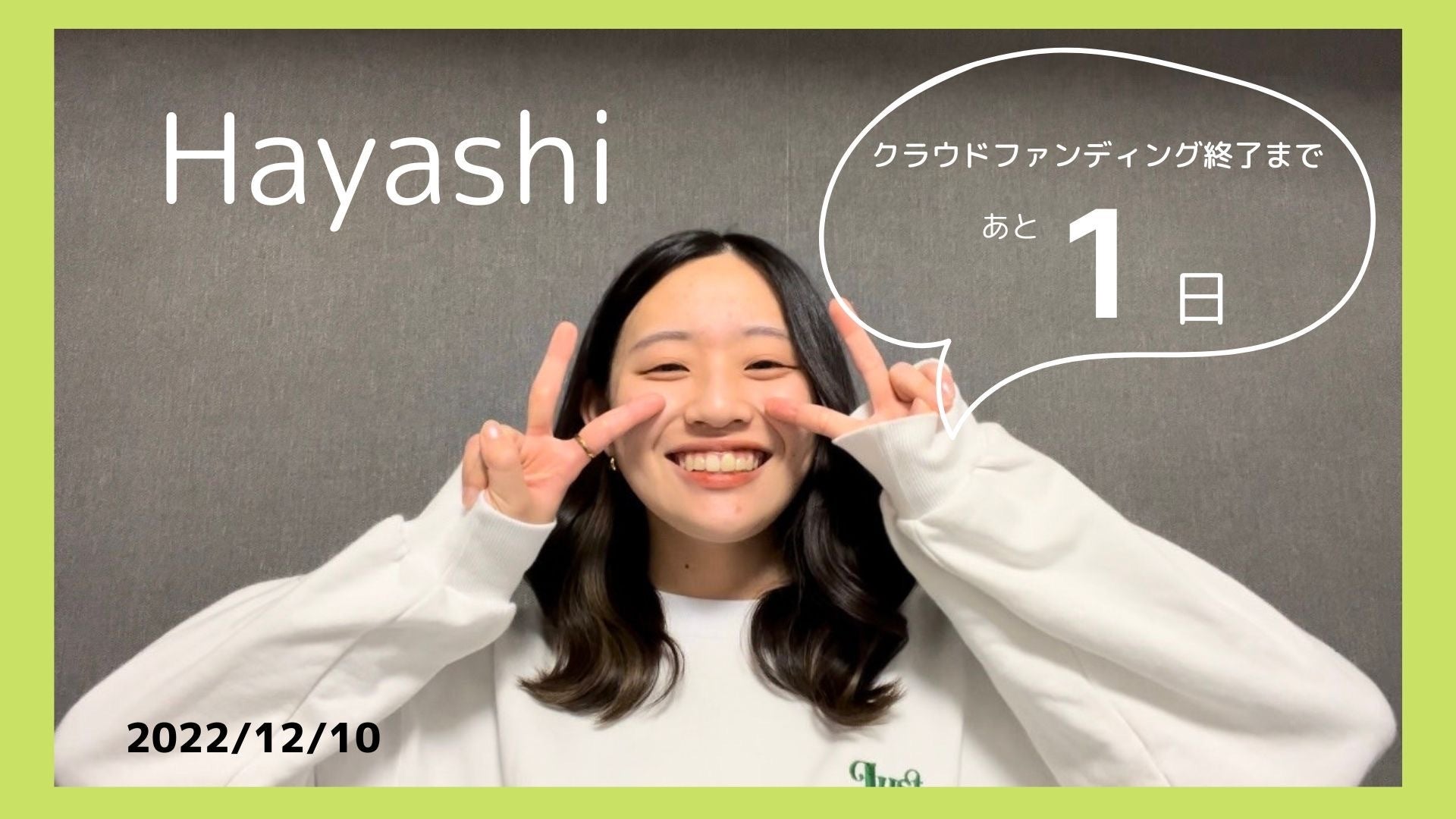 こんにちは!代表の辻です。本日はゼミ副代表の”Hayashi”です。ぜひご覧ください。いよいよクラウドファンディングもラストスパートです。ここまで応援してくださった皆様、本当にありがとうございました。クラウドファンディング目標達成まであと少しです!!最後の最後まで皆様のご協力よろしくお願いいたします!