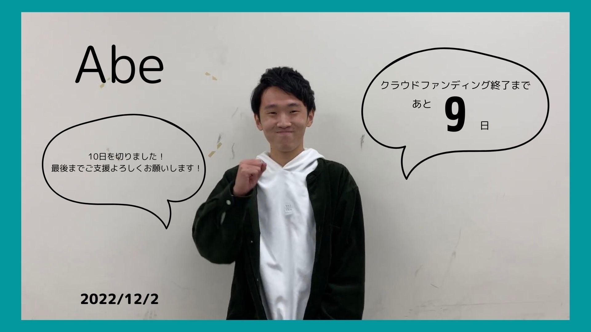 こんにちは!代表の辻です。本日はゼミ生の”Omori”です。ぜひご覧ください。クラウドファンディング終了まであと1週間となりました。ただ、未だ目標達成できておりません。ぜひ目標達成に向け、ご支援よろしくお願いいたします!