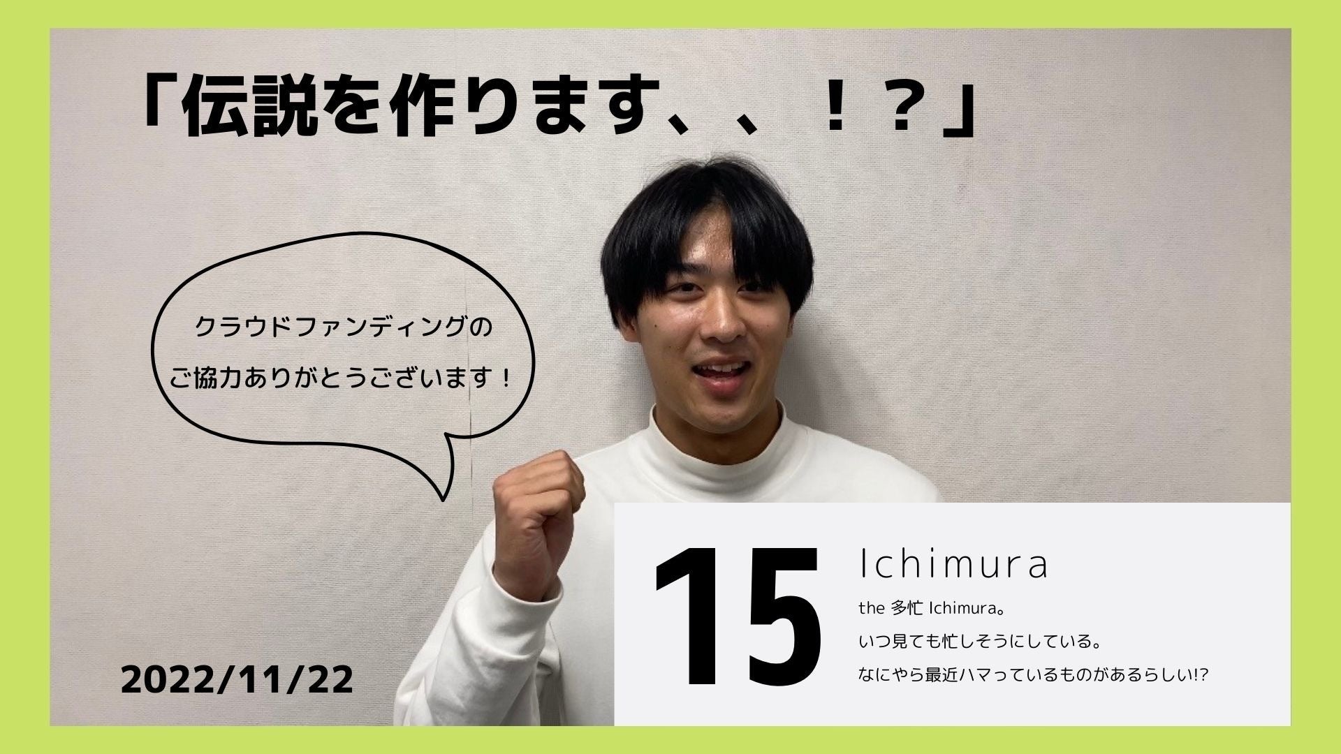 こんにちは!代表の辻です。本日はゼミ生の”Ichimura”です。ぜひご覧ください。