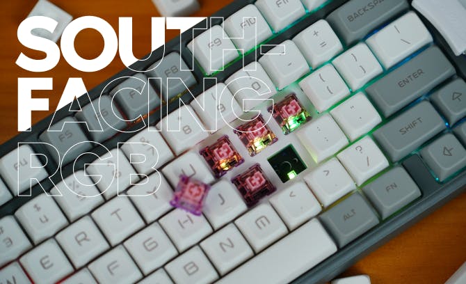 RGBライトは誰でも好きですが、ほとんど見えなければ意味がありません。TH96は、南向きRGBを採用し、タイピングする人の目線に合わせてキーボードのバックライトをより明るく照らすように設計されています。また、南向きのRGBは、ユーザーがキーボードにチェリープロファイルの代替キーキャップを取り付けた場合にも干渉することはありません。