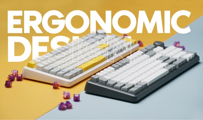 柔らかいシリコン製の底面フレームはプレイ中の事故を防ぎ、MDAプロファイルのキーキャップを使えば手首や指に負担をかけずに自在にタイピングすることが出来ます。