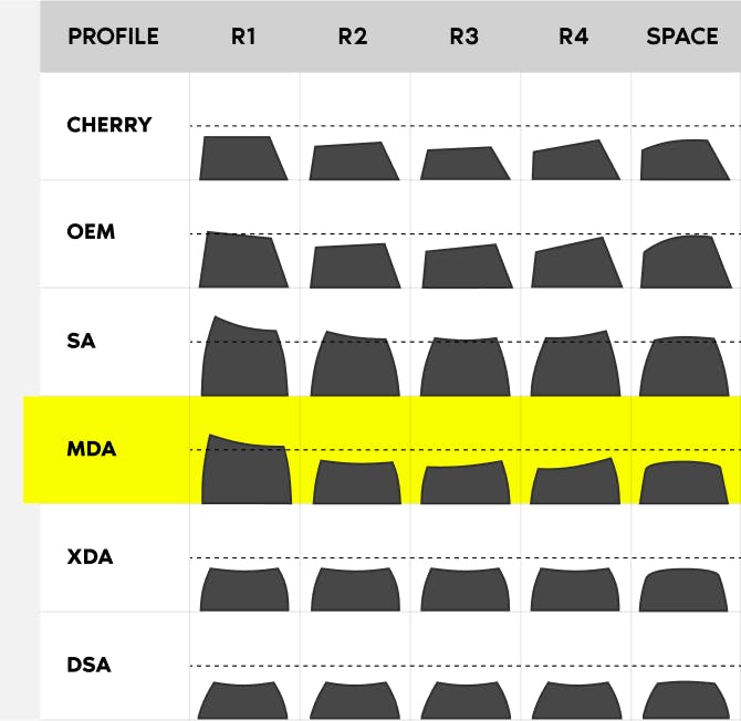 セオリー版にはクラシックMDAプロファイルを、グレーホワイト版にはMDA V2プロファイルを提供します。MDA V2は、クラシックプロファイルと比較して、高さを継承しつつ、キーキャップのエッジを丸く最適化し、より滑らかなタッチ感を実現しています。 このキーキャップは防水性があり、埃や摩擦に強いのが特徴です。あなたのタイピング体験に最適なプロファイルをお選びください。
