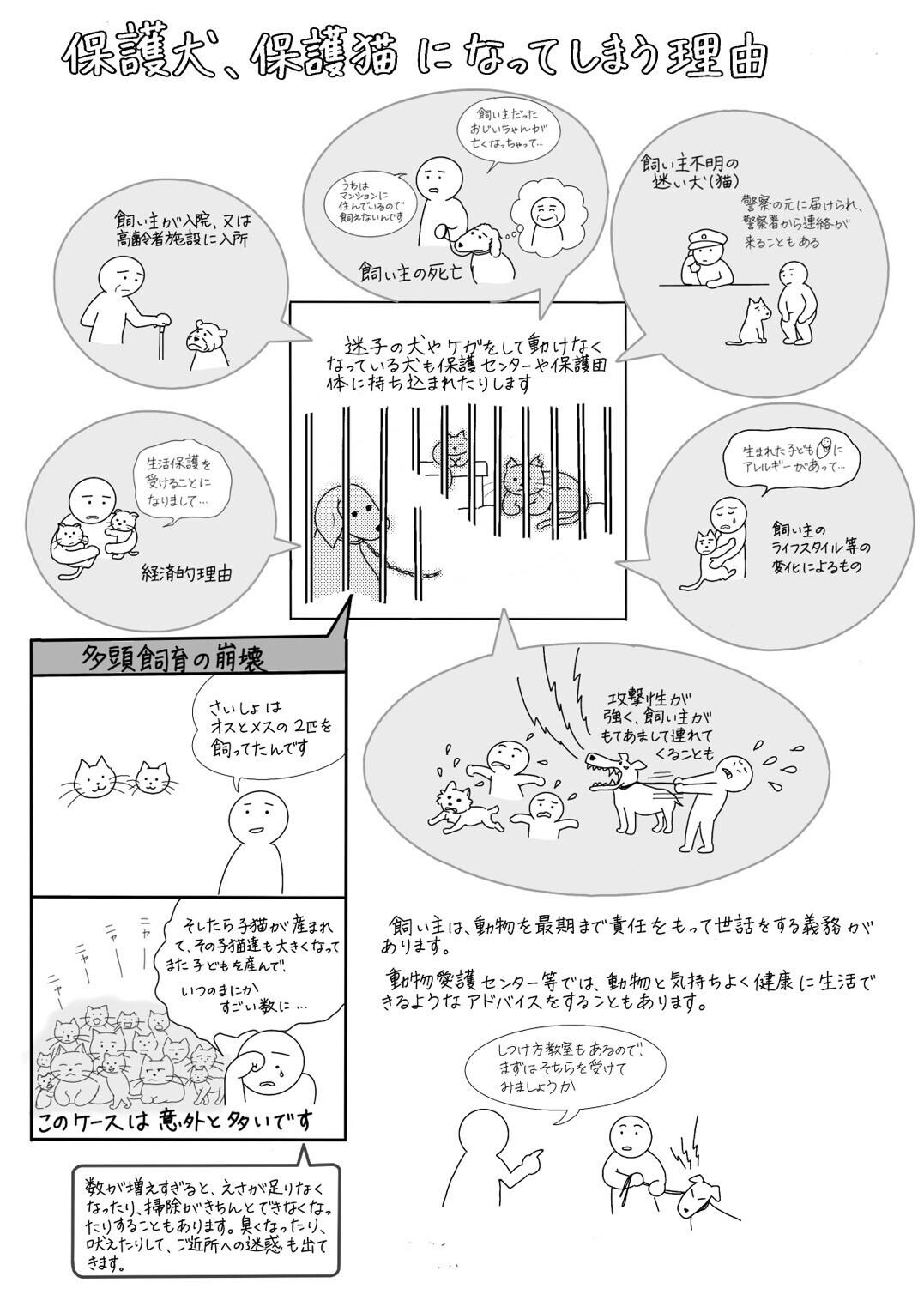 動物保護センター等に見学に行って教えていた代と話なども漫画で読みやすく紹介しています。