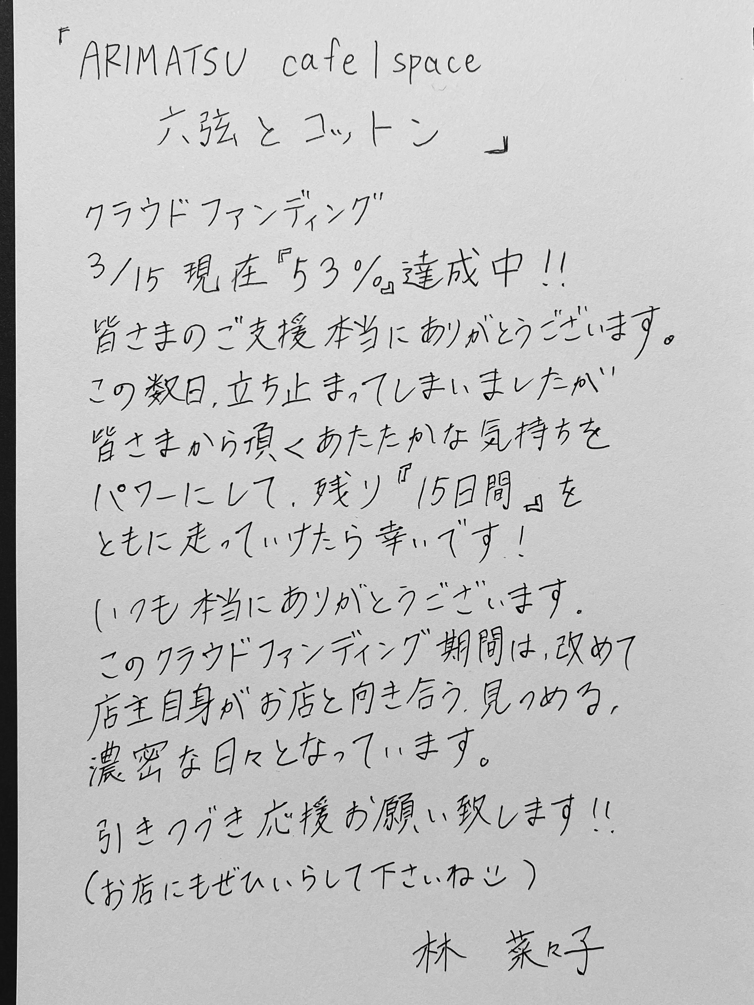 さて、クラウドファンディング期間も早いもので半分が過ぎました。
