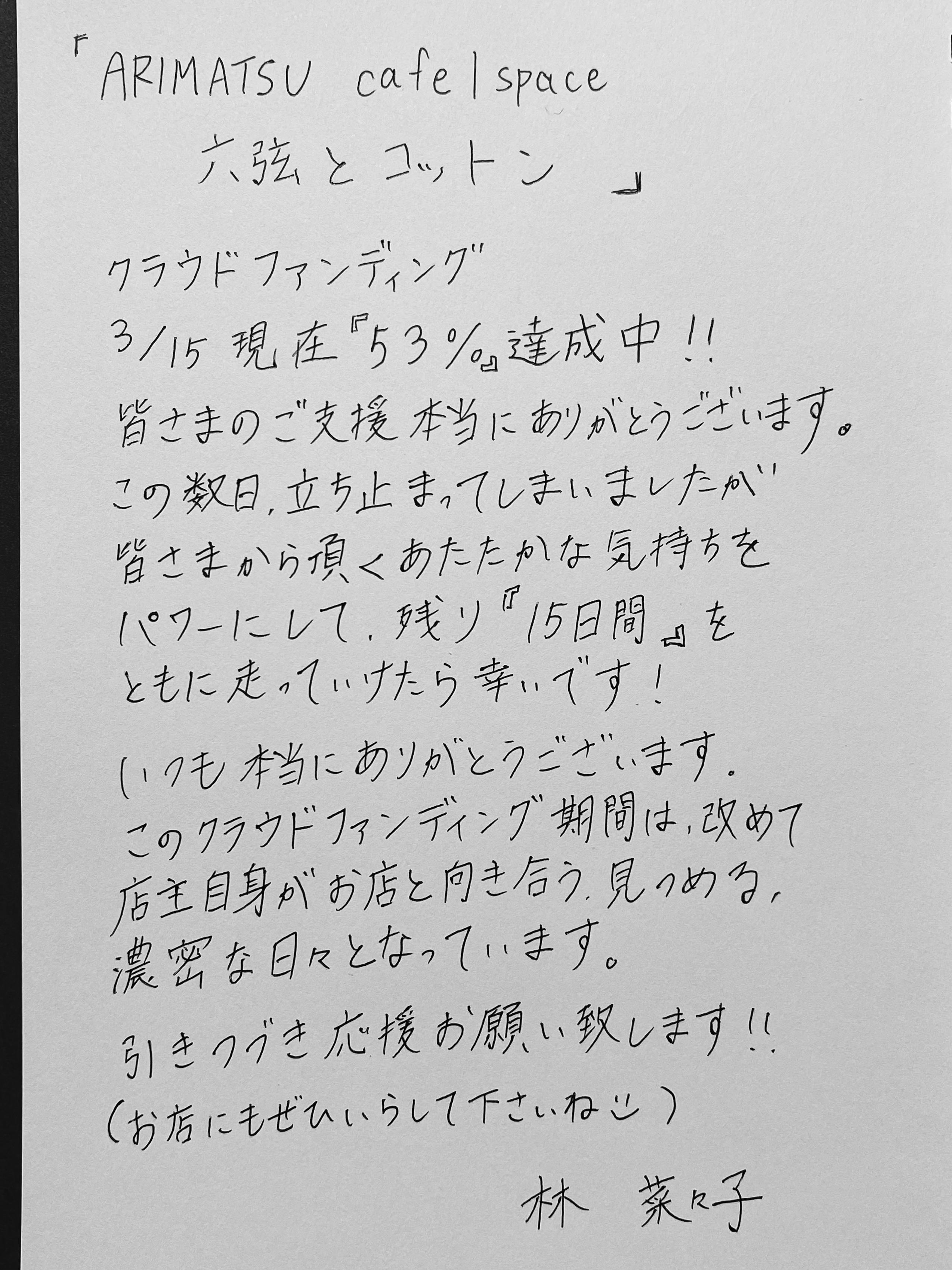 3/15現在53%の「404,500円」のご支援を頂いております。