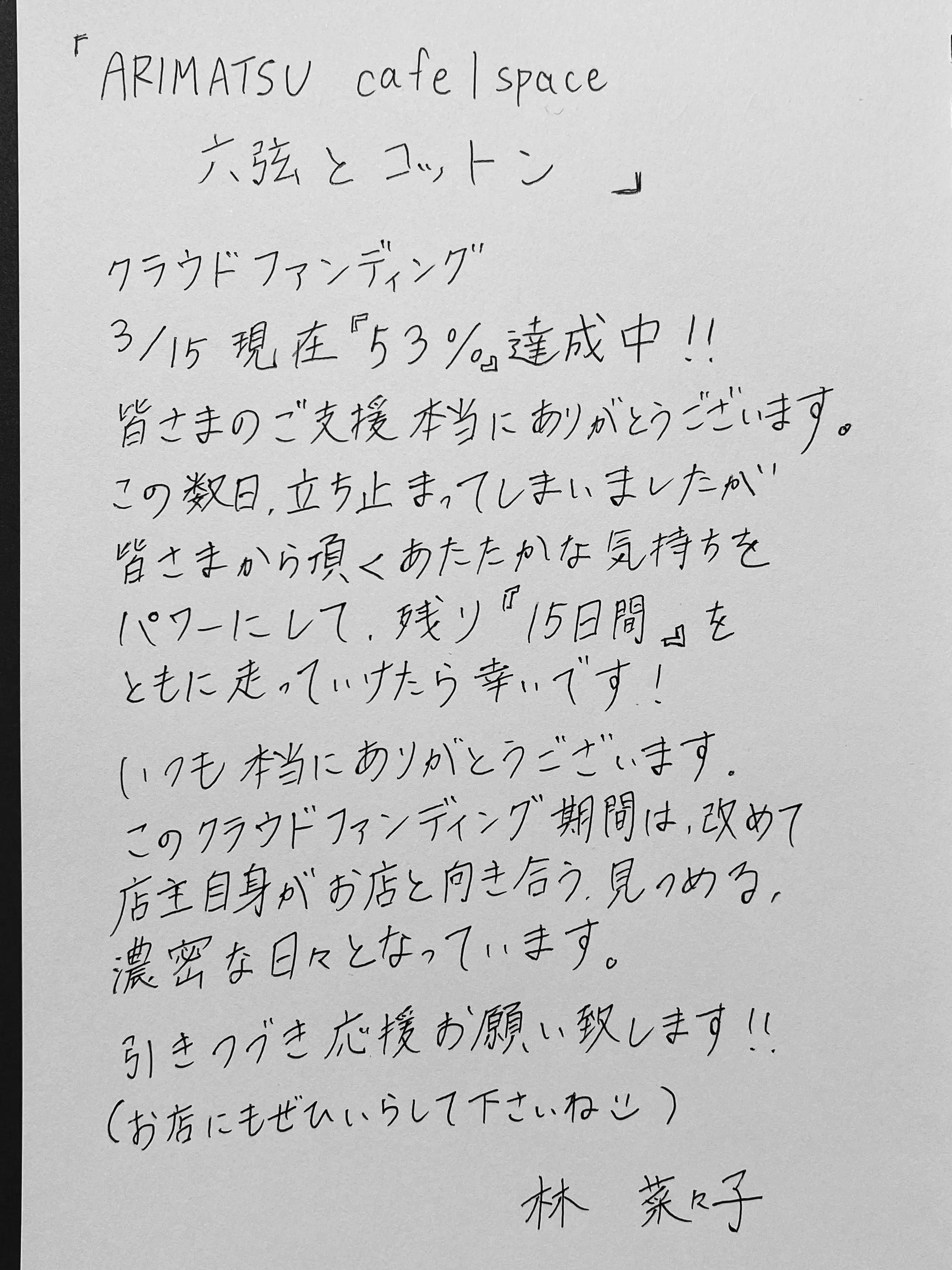 そんな中でもクラウドファンディングを通して応援の気持ちを届けてくださった皆様、メッセージをくださった皆様に心身を救われてようやく動き出すことができました。