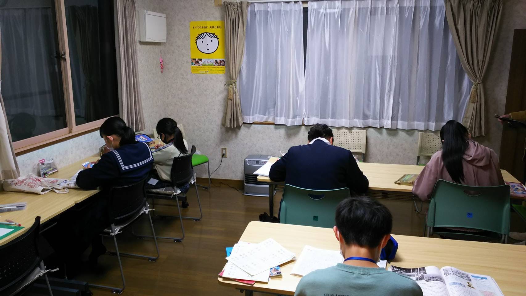 2022/10/17 00:36高校受験、大学受験にも対応しています。先生は元教師、現職の教師、教員免許、学習指導員、元塾講師等々全員ボランティアで指導しています。毎週欠かさず塾にきて、熱心に教えてくれています。2016年からずっと参加されている先生もいます。時には塾のために有給を使って参加してくれる先生も・・・頭が下がる思いです。子ども達も時間いっぱい真剣に学習しています。毎年12月にクリスマス会を行っていましたが、昨年は実施出来ず、今年はささやかにクリスマスケーキを食べる予定です。受験シーズンに突入です。今年3月は全員志望校に合格出来ました。先生も指導に力が入ります。学習塾の開催日を11月より増やします。有料塾のように毎日でも出来ればいいのですが、できる限りのサポートをしていきます。 もっと見る