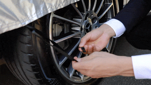 Step4. カーカバーの四隅を車の前部と後部の底に掛けます。防風ロープと盗難防止ロープを同時に使用することをお勧めします。