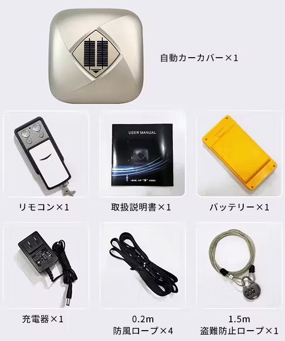 リモコンでワンプッシュ自動展開・収納・停止が可能。1回の充電で45日間使用。盗難防止アラーム機能&前後に蛍光反射テープ付きで、夜間の駐車にも安心。愛車をしっかり保護できるビッグサイズなのに、トランクにコンパクトに収納。