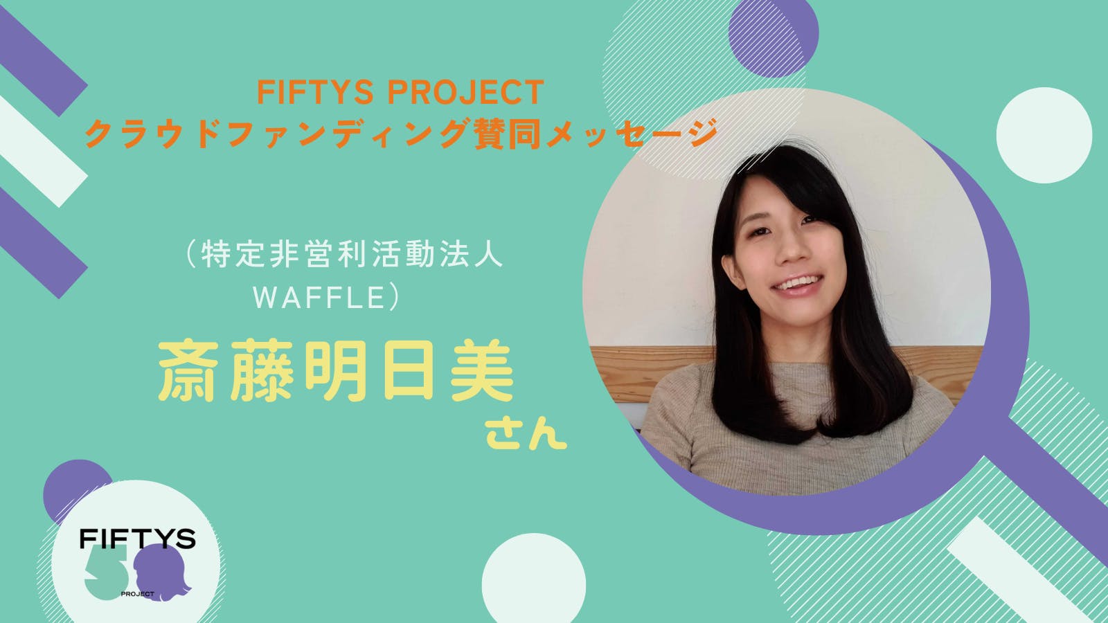 本日は、特定非営利活動法人Waffleの共同創業者である斎藤明日美さんからの賛同メッセージをご紹介いたします!