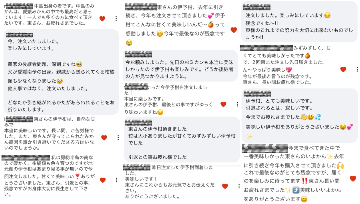 そんな、東さんの伊予柑ですが、2022年の最後引退シーズンにSNSで集まった口コミをまとめた画像がこちら。