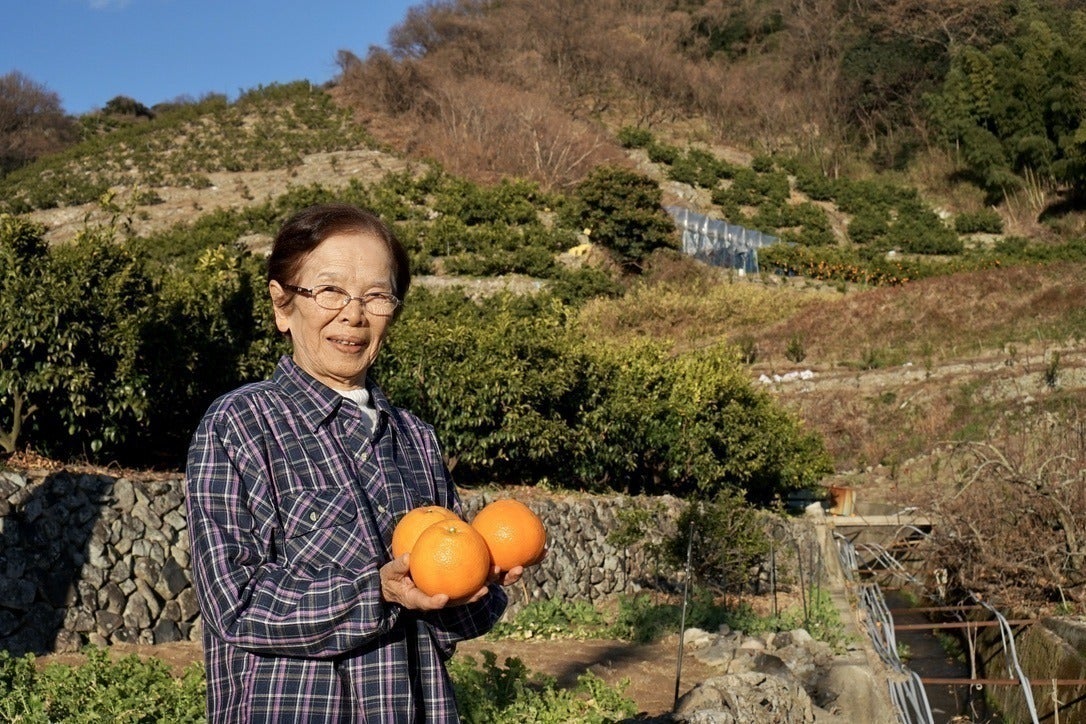 ※写真は中島で50年以上伊予柑を作られてきた東さん80歳