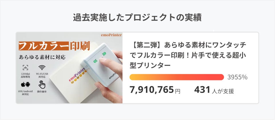 クラウドファンディングによって集まった資金はCAMPFIRE手数料を除き、「emoPrinter 」の商品仕入れ、販促、支援者の皆様への配送の費用などに使用させていただきます。