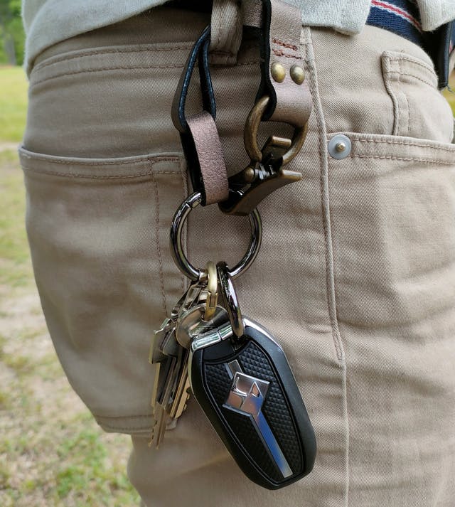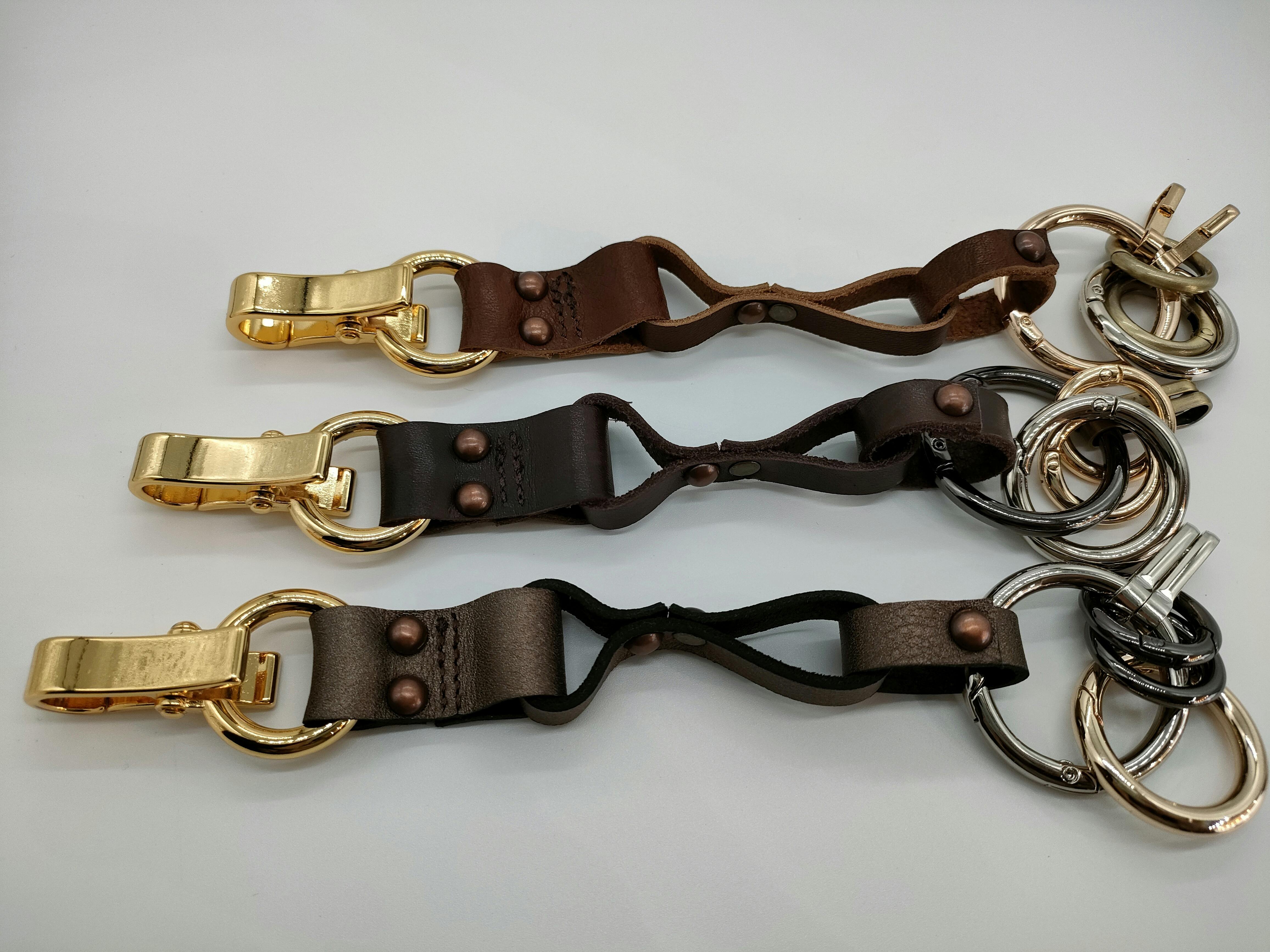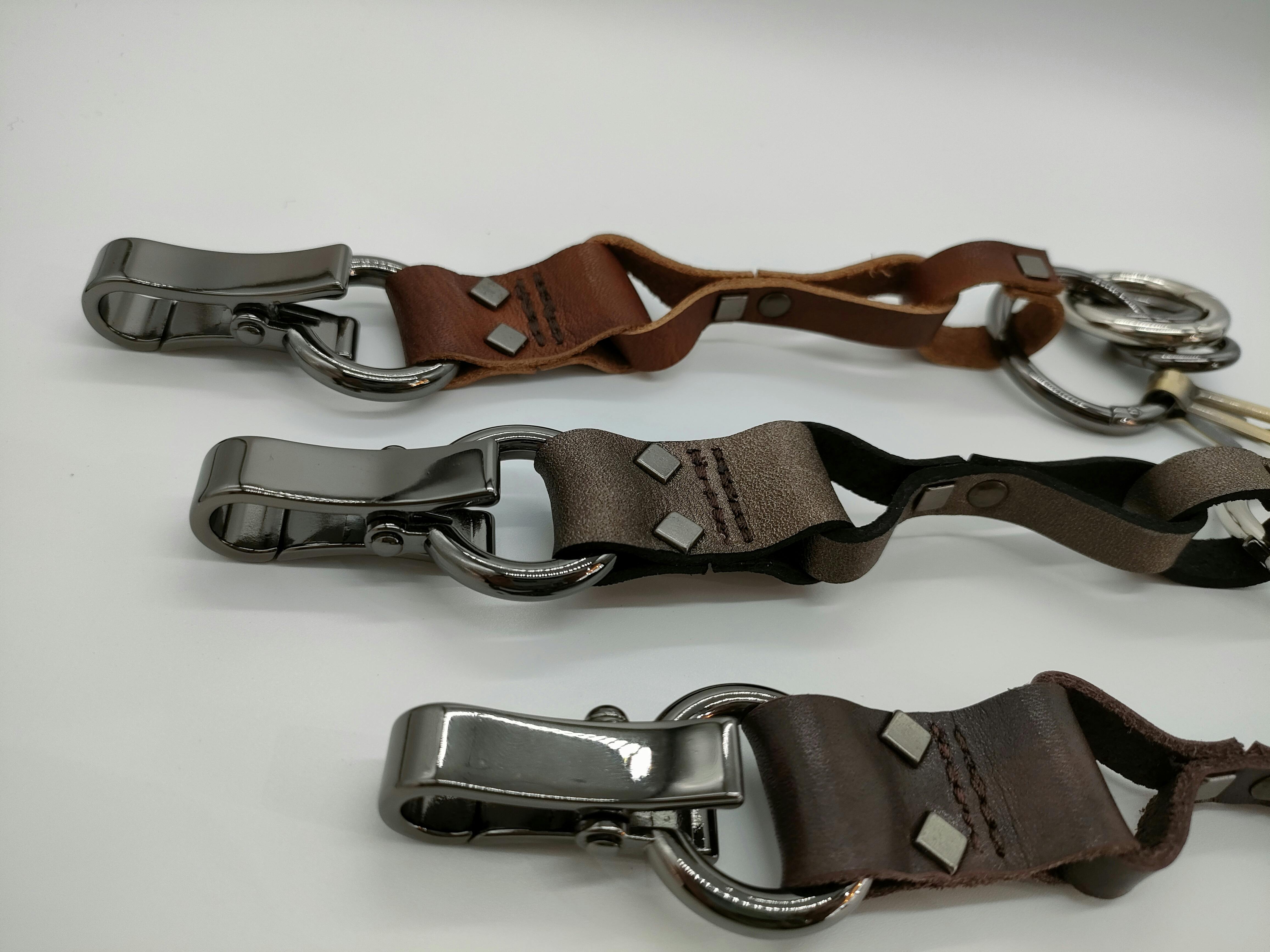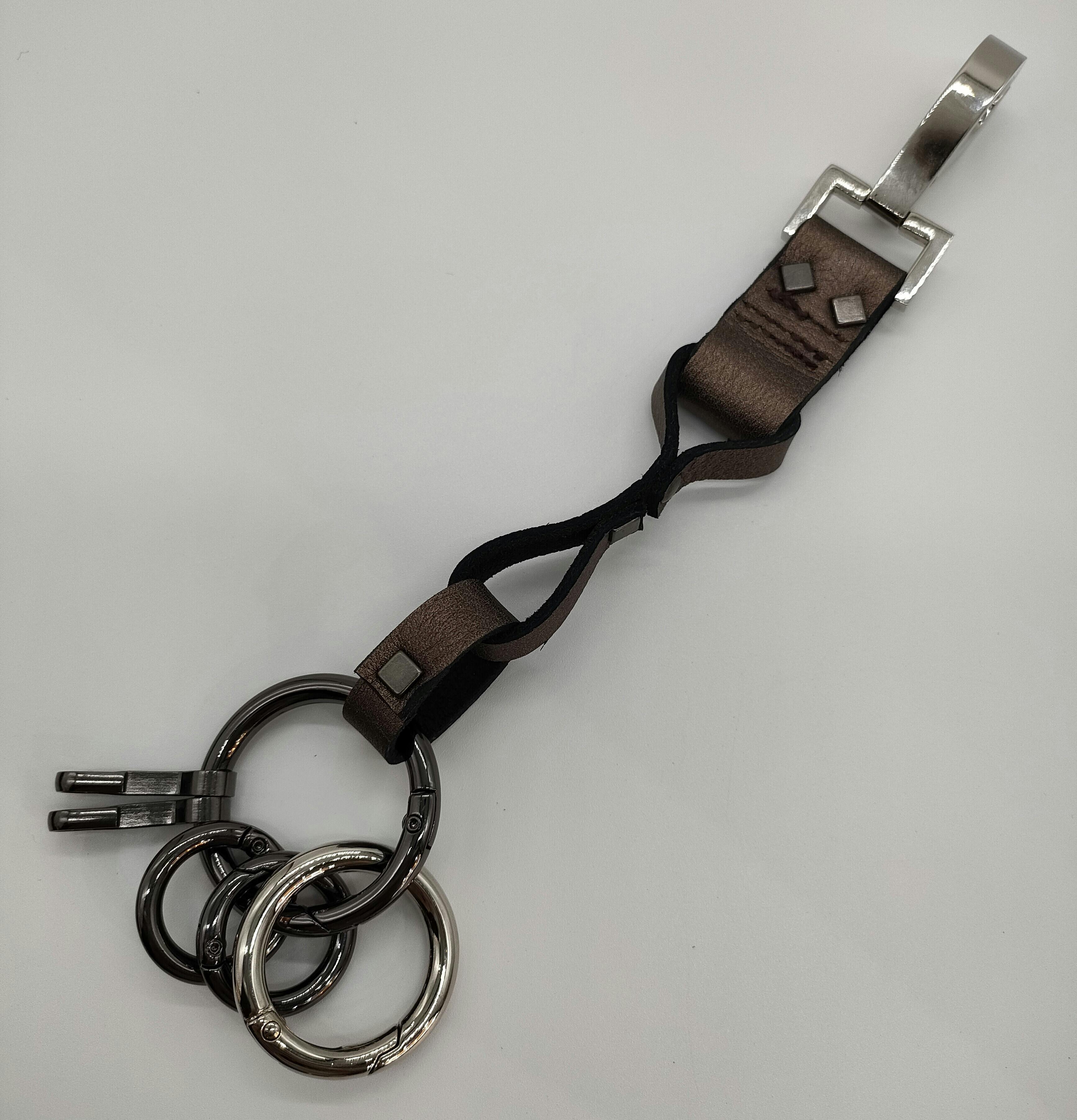 重厚な金具類と風合い高いレザーが格好良い!!アクセサリー感覚でキーホルダーを手軽に身軽に!