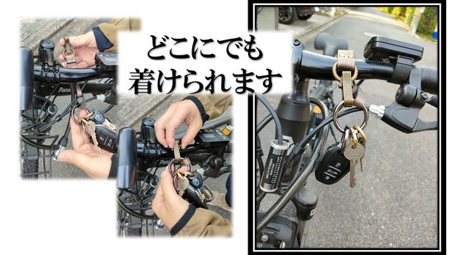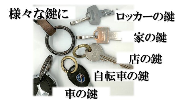 キーリングも家、会社、車、バイク、自転車に・・・様々なサイズに当てはまるようにチョイスしています。