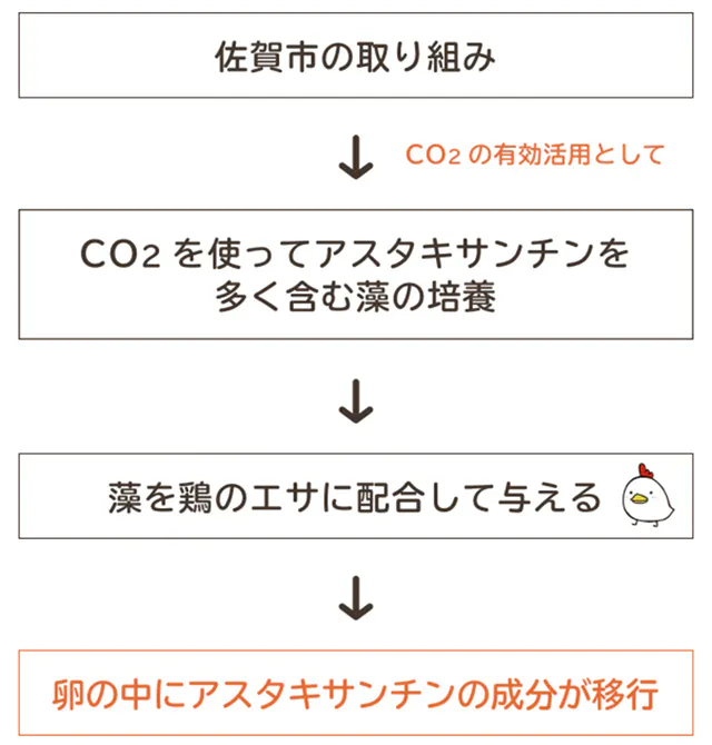 この取り組みに参加させていただき、誕生したのがアスタキサンチンが入った「壮健美卵」です。