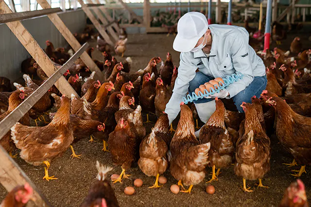 月に1回サルモネラ検査を行っています。また月に1回獣医師巡回で、鶏の健康チェックを行ってもらっています。