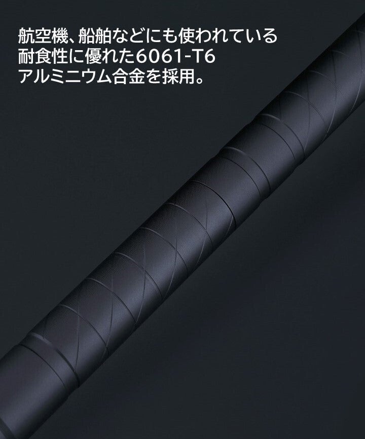 ハンドル部分は6061-T6の航空アルミニウム合金を採用し、高い強度と耐久性に優れております。表面はアルマイト(陽極酸化処理)を行い、耐久性と質感を向上しました。